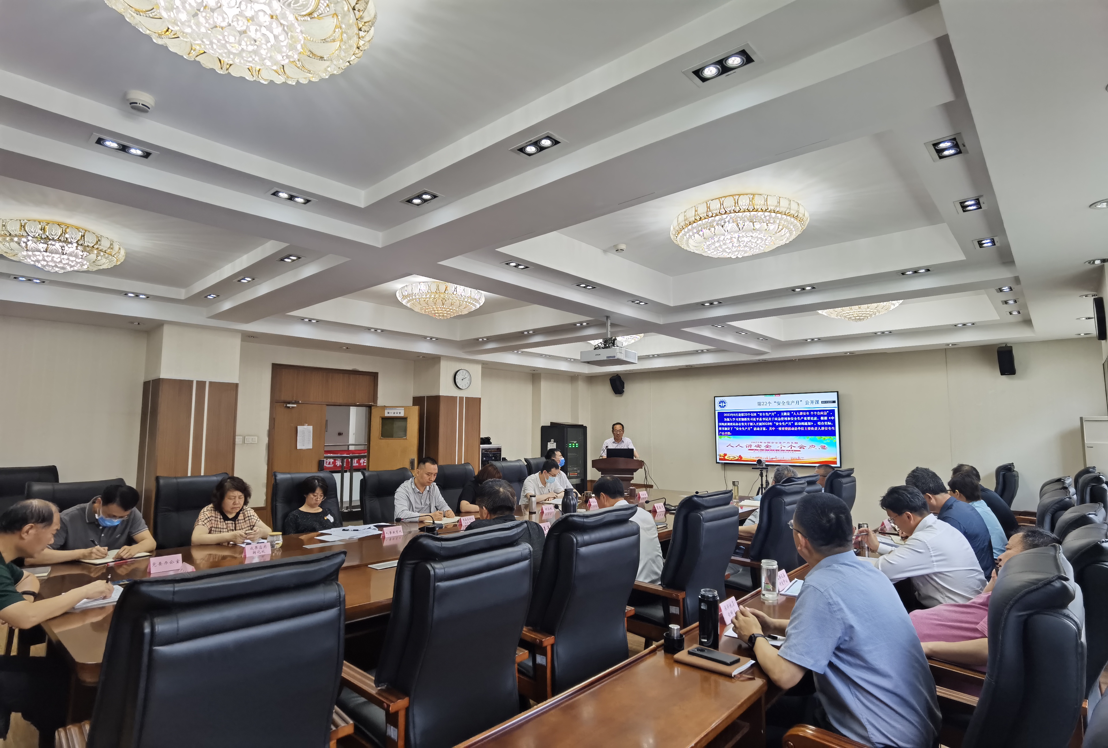 全所干部职工在现场或通过视频远程参会,课后观看了《2023年安全生产月主题宣传片》。